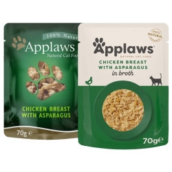 Saszetki Applaws to najwyższej jakości zawartość, zawierająca tylko i wyłącznie smakowite, czyste kawałki mięsa z piersi kurczaka lub filetu z tuńczyka uzupełnione Dzikim Ryżem, Szparagami, Anchois, Krewetkami Pacyficznymi...