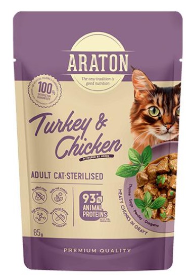 ARATON Sterilised Adult Cat Turkey and Chicken, 85g