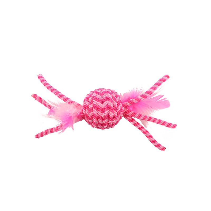 Zabawka dla kotów w kształcie piłeczki, wykonana z elastycznego sznurka i piór. Przy potrząsaniu wydaje gruchający dźwięk.