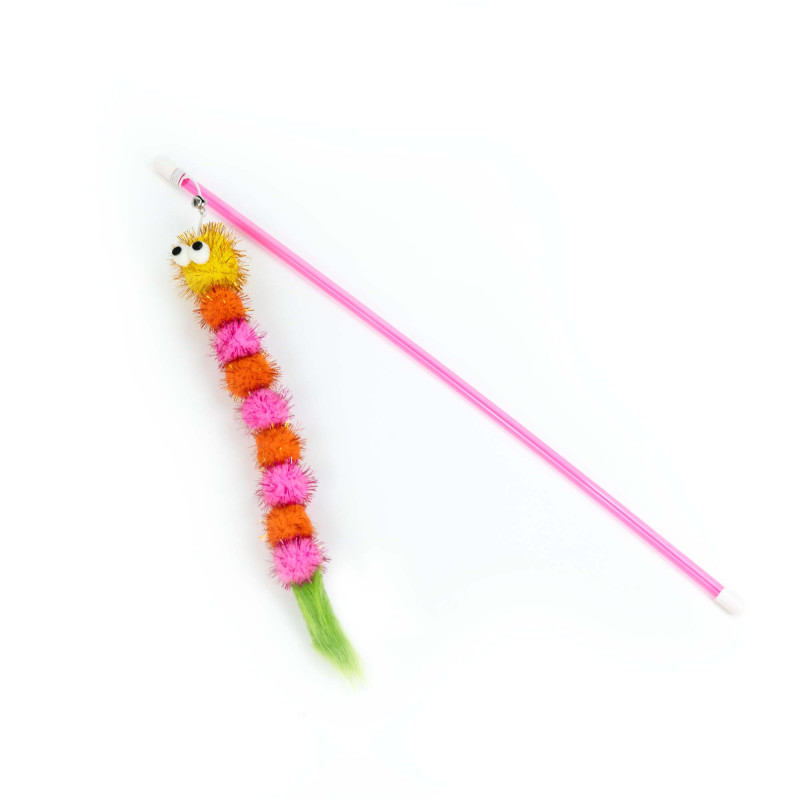 Zabawna i kolorowa wędka z gąsienicą to świetna propozycja dla każdego kota! Gąsienica wykonana jest z miękkich, puszystych pomponów, ozdobionych błyszczącą nitką, która przyciąga wzrok i zachęca do zabawy. Koniec zakończony jest zielonym ogonkiem, który dodatkowo pobudza do gonitwy. Lekka, plastikowa wędka umożliwia wygodną zabawę z kotem. Doskonała do wspólnej aktywności – pomaga kotu rozładować energię i wspiera zdrowy ruch każdego dnia.