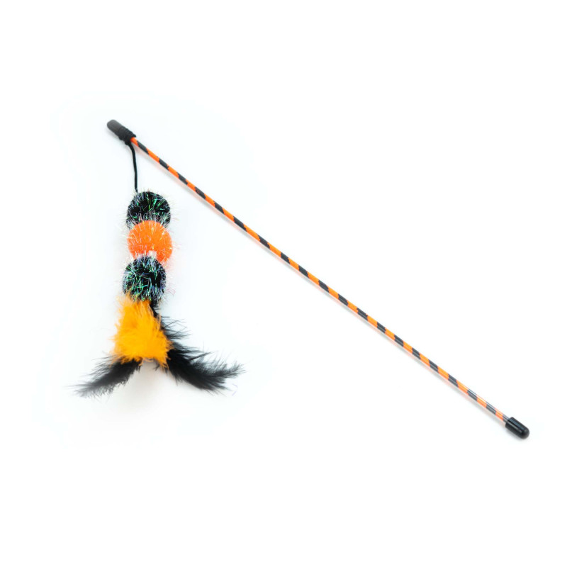Kolorowa wędka z pomarańczowymi pomponami, piórkiem i świecącą nitką to zabawka, której trudno się oprzeć. Żywe kolory przyciągają uwagę, a lekka konstrukcja umożliwia długie i wygodne zabawy. Pompony poruszają się w dynamiczny sposób, stymulując instynkt łowiecki kota. Idealna do codziennego polowania i interaktywnej zabawy z opiekunem.
