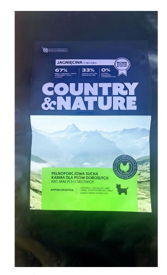 Karma COUNTRY&NATURE Jagnięcina z Indykiem to pełnoporcjowa sucha karma dla psów dorosłych ras małych i średnich.