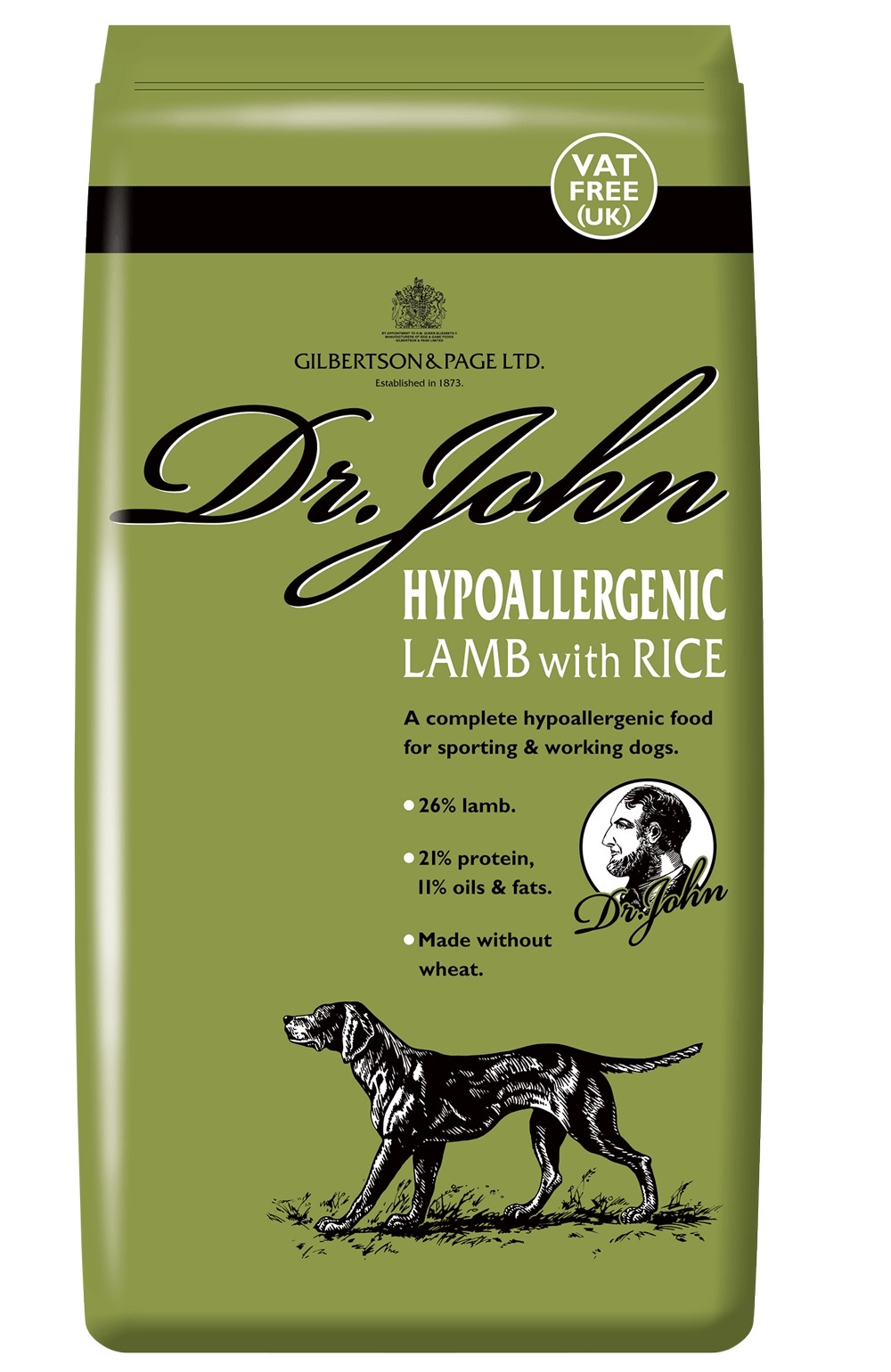 zboża (w tym minimum 14% ryżu), mięso i produkty pochodzenia zwierzęcego (w tym minimum 26% mączki z jagnięciny), oleje i tłuszcze, nasiona i pestki, składniki mineralne.