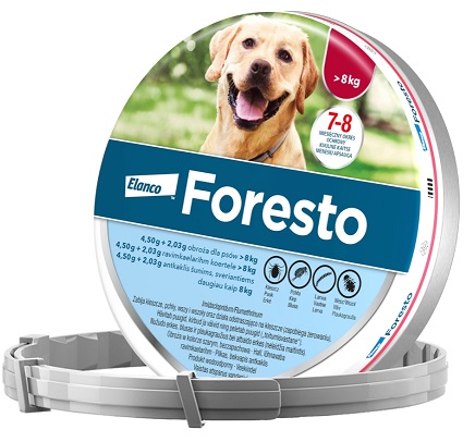 W przypadku psów o masie ciała ≤ 8 kg należy stosować obrożę Foresto 1,25 g + 0,56 g dla psów o masie ciała ≤ 8 kg.