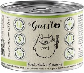 Pełnowartościowa, kompletna i znakomicie zbilansowana karma superpremium dla kotów. Produkowana jest w 100% z najwyższej jakości świeżego mięsa w wysokim standardzie odpowiadającym wymaganiom żywności dla ludzi. Gussto to esencja dobrego i zdrowego żywienia. Zawiera bardzo dużo mięsa idealnie odpowiadając specyficznym wymaganiom pokarmowym kotów. Jest to karma lekkostrawna i bardzo dobrze przyswajalna. Znakomicie zrównoważony stosunek wapń/fosfor minimalizuje ryzyko chorób układu moczowego i nerek. Karma Gussto zawiera dużo niezbędnych witamin i minerałów jest bardzo bogata w Taurynę i Biotynę, a w jej skład wchodzi dobroczynny olej z łososia – bogaty w nienasycone kwasy tłuszczowe, które mają działanie przeciwzapalne.