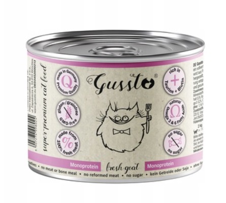 Produkt zawiera dużą ilość mięsa, która idealnie odpowiada specyficznym wymaganiom pokarmowym kotów. Gussto to karma monobiałkowa, a więc holistyczna, lekkostrawna i wyjątkowo dobrze przyswajalna, dzięki czemu polecana jest także dla kotów o wrażliwym przewodzie pokarmowym, w diecie wykluczającej oraz w przypadku alergii pokarmowych. Odpowiednio zbilansowany stosunek wapnia i fosforu pozwala zminimalizować ryzyko chorób nerek i układu moczowego. Dodany olej z ostropestu jest źródłem nienasyconych kwasów tłuszczowych, ma działania przeciwzapalne, reguluje czynności trawienne i regeneracyjne wątroby oraz wzmacnia układ odpornościowy.