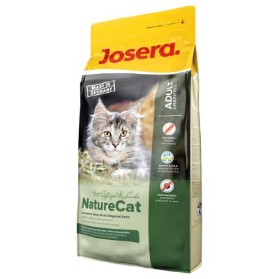 Czy Twój kot nie toleruje zboża i jest prawdziwym tygrysem? Karma JOSERA NatureCat to prawdziwy rarytas dla kotów odkrywców i poszukiwaczy przygód. Bezbożowa formuła jest szczególnie polecana w codziennej diecie wrażliwych kotów i kociąt od 6 miesiąca życia.