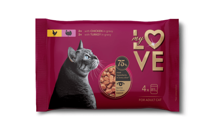 My Love Pełnoporcjowa karma w saszetkach dla dorosłych kotów z indykiem w sosie 2x85g