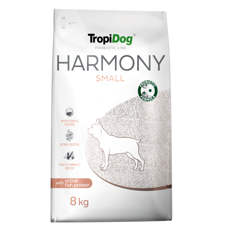 TropiDog Probiotic Line Harmony Adult Small Breeds – z aktywnym białkiem pochodzenia rybnego